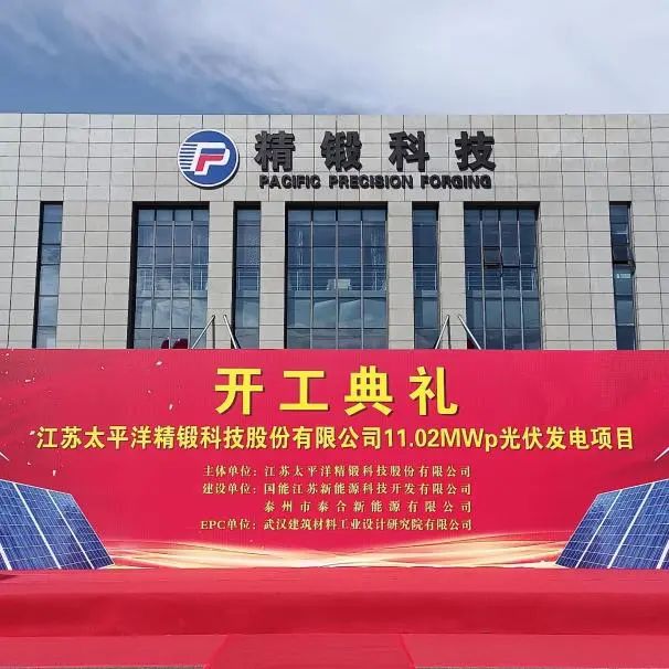 9月9日上午,江蘇太平洋精鍛科技11.02MWp光伏發(fā)電項目舉行開工典禮,太平洋精鍛科技股份有限公司(以下簡稱“太平洋精鍛”)董事長夏漢關、國能江蘇新能源科技開發(fā)有限公司(以下簡稱“國能江蘇”)總經(jīng)理王立公、武漢建筑材料工業(yè)設計研究院有限公司(以下簡稱“武漢建材院”)總經(jīng)理楊順德等出席開工典禮。